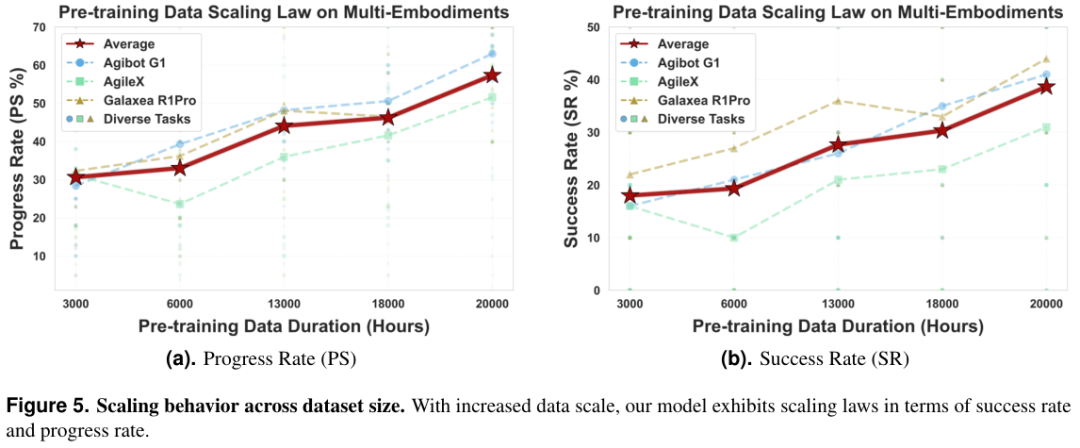 这表明目前的机器人性能仍然可以通过增加数据量来进一步压榨。