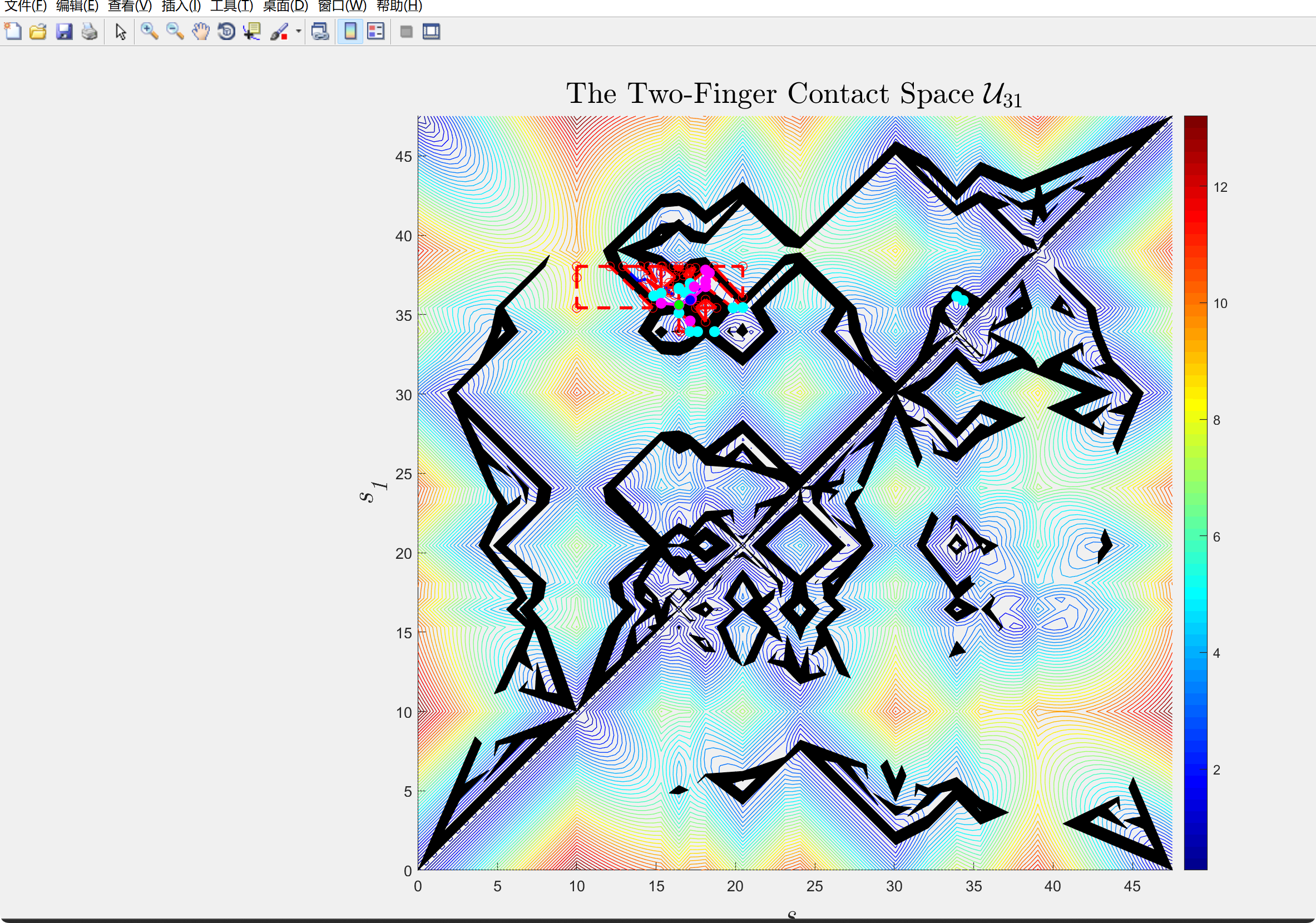 - 首先,根据三指手的几何结构和运动特性,构建手部接触空间。该空间包含了所有可能的二指和三指接触点,以及它们之间的相对位置关系。