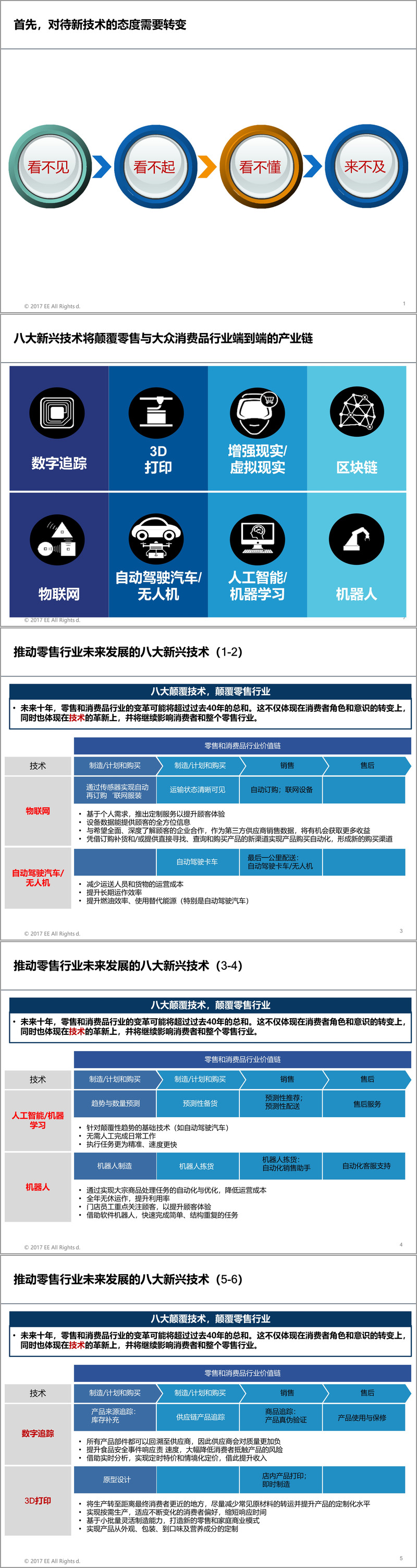 其次,八大新兴技术正在颠覆零售与消费品行业,包括物联网、人工智能与机器学习、机器人、数字追踪、3D打印、增强现实与虚拟现实、区块链以及自动驾驶汽车与无人机。这些技术不仅优化了从制造、计划、销售到售后的全价值链环节,更催生了如“联网服装”、个性化定制、自动补货等创新服务模式,推动行业向智能化、柔性化、体验化方向演进。
