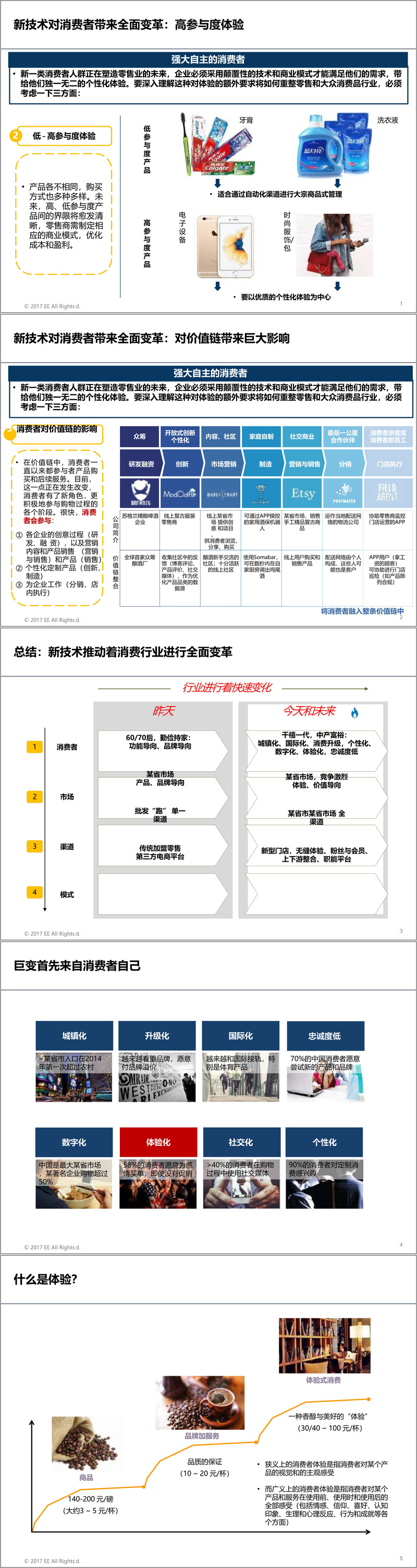 在消费者层面,扩展的消费者等式重新定义了价值构成:消费者价值等于升级后的成本、选择、便捷性、掌控感与体验的总和。企业需针对高参与度与低参与度产品设计差异化的体验策略,并将消费者深度融入价值链的研发、创新、营销、制造乃至分销环节,实现从“消费者购买”到“消费者共创”的转变。