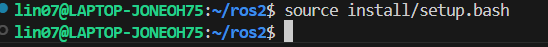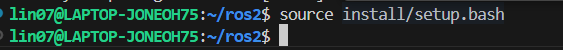 运行可执行文件之前,还要使用source命令加载install/setup.bash脚本,配置环境变量,让功能包能被当前系统识别