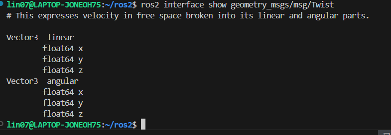 /turtle1/cmd_vel是ROS2 turtlesim的默认速度控制话题,turtle1是话题的命名空间 (用于区分多只海龟,生成新海龟后会有/turtle2/cmd_vel),cmd_vel是话题的核心标识,代表 “速度指令”,是ROS 中机器人速度控制的通用话题名。