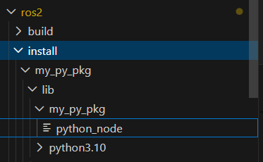 python_node是生成的可执行文件,文件名就是我们前面在setup.py文件中定义的可执行文件名称