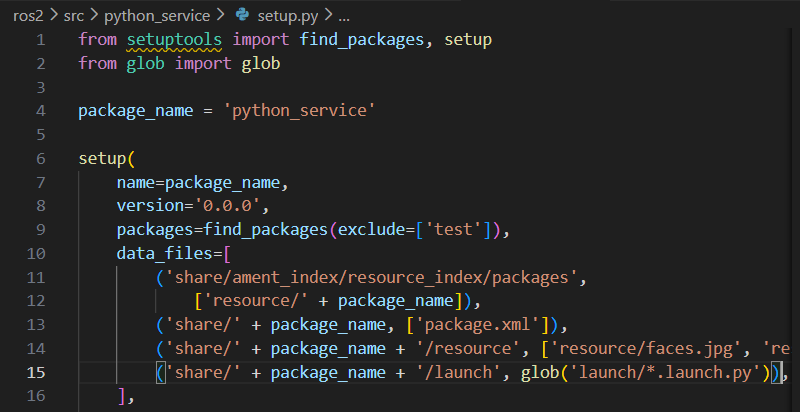 在setup.py中配置一下,先导入glob库,添加路径(第15行)