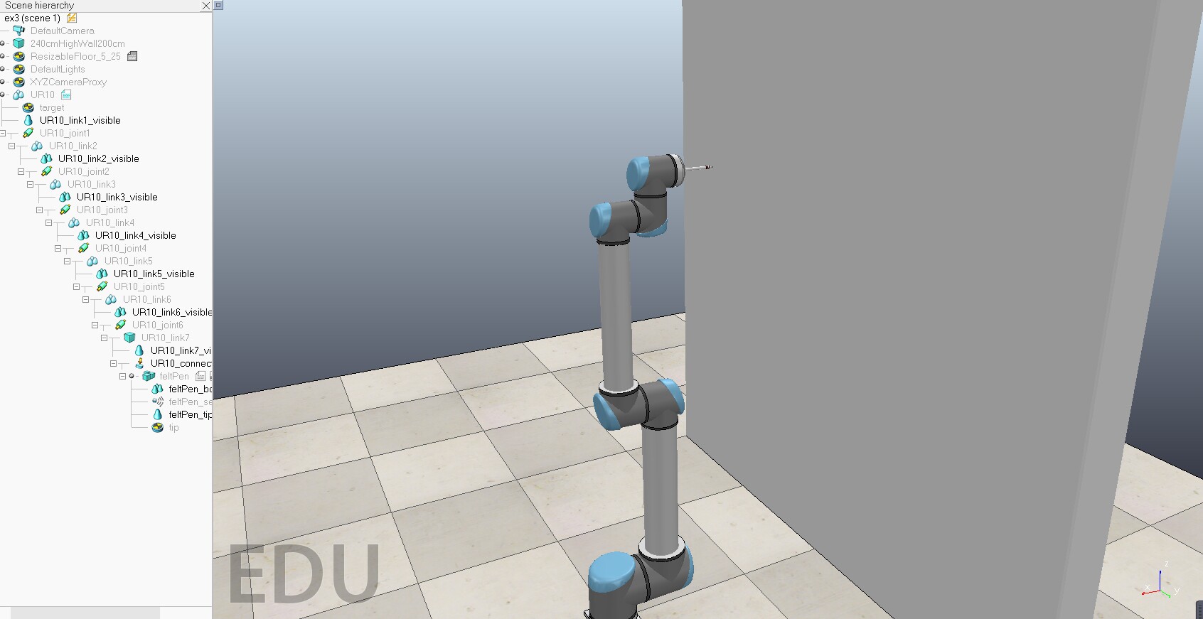 vrep/coppeliasim+matlab,机器人轨迹控制仿真,利用matlab读取轨迹并控制机械臂在墙上绘图,里面有轨迹规划的相关算法。 此为学习示例,有详细的代码和说明文档