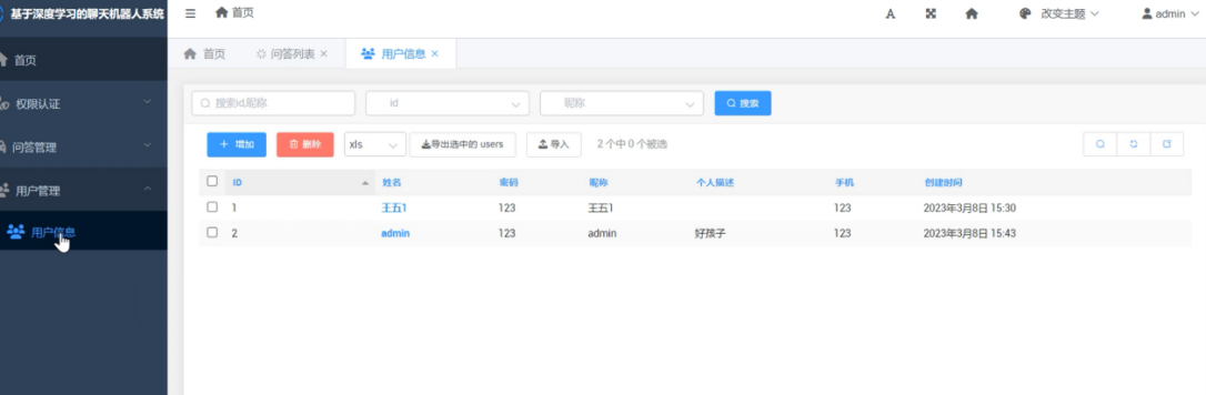 (2)用户信息管理:管理员用户通过此功能可以维护系统内注册用户的信息,比如可以对用户的姓名、电话或联系方式等信息进行管理。