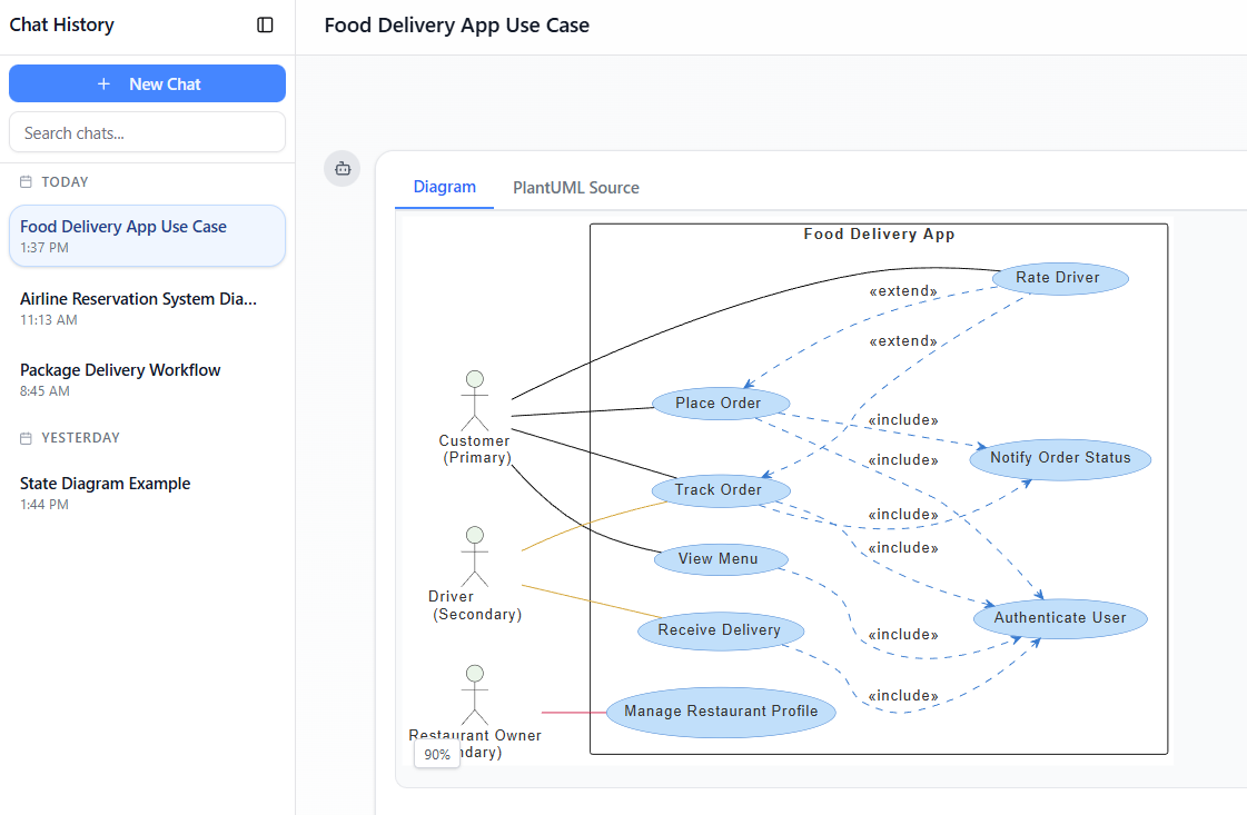 VisualParadigm AI聊天机器人革新了UML用例图绘制流程,让开发者通过自然语言交互快速生成专业图表。用户只需描述系统需求(如外卖App的角色和功能),AI即可自动生成布局规范的用例图,智能处理include/extend关系,并输出可编辑的PlantUML代码。该工具支持渐进式修改,实时响应"加登录验证"等需求变更,大幅提升团队协作效率,将传统耗时的拖拽绘图转变为
