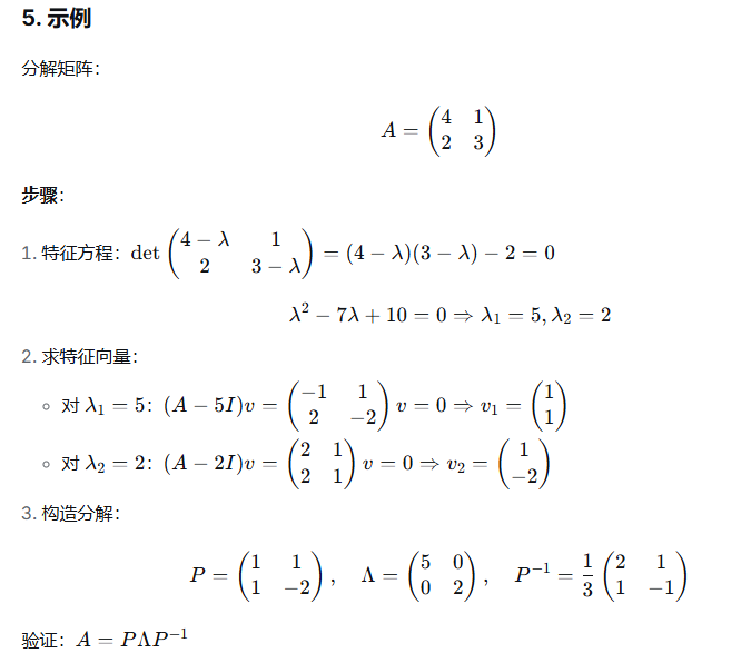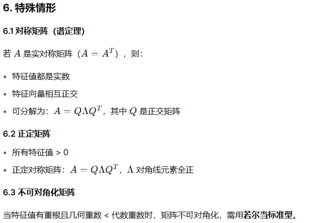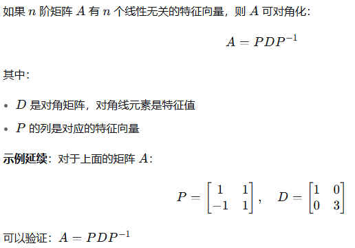 4、不是所有矩阵都可对角化(当线性无关特征向量少于 nn 时)