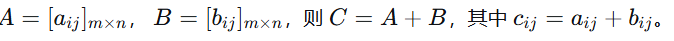 定义:只有同型矩阵(行数和列数分别相等)才能相加。对应位置的元素相加。