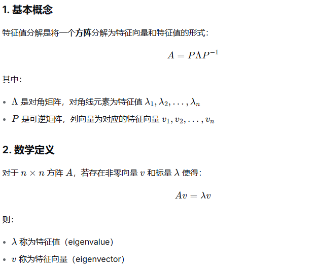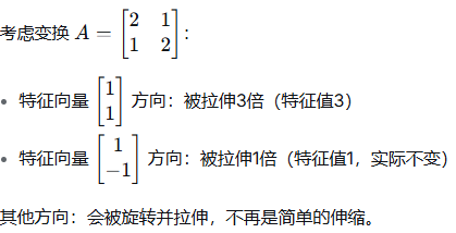 特征向量 是在这个变换下方向保持不变的向量(只被拉伸或压缩,不旋转)