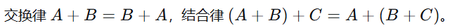 满足分配律:A(B+C)=AB+AC, (B+C)A=BA+CA。
