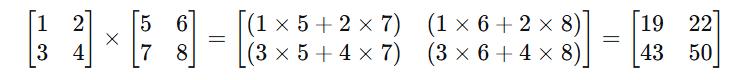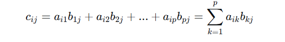 计算:若A是m×p矩阵,B是p×n矩阵,则C=A×B是m×n矩阵。其中C的第i行第j列元素Cij等于A的第i行向量与B的第j列向量的点积。