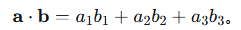 定义:两个向量的点积是一个标量,计算为对应分量乘积之和。