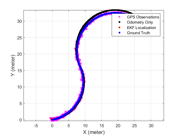 【滤波跟踪】基于拓展卡尔曼滤波的移动机器人 2D 定位系统融合里程计和 GPS数据实时估计机器人的位姿附matlab代码