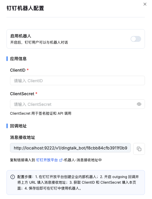 KnowFlow 现已支持钉钉企业机器人接入,让知识库能力触达企业 IM 场景: