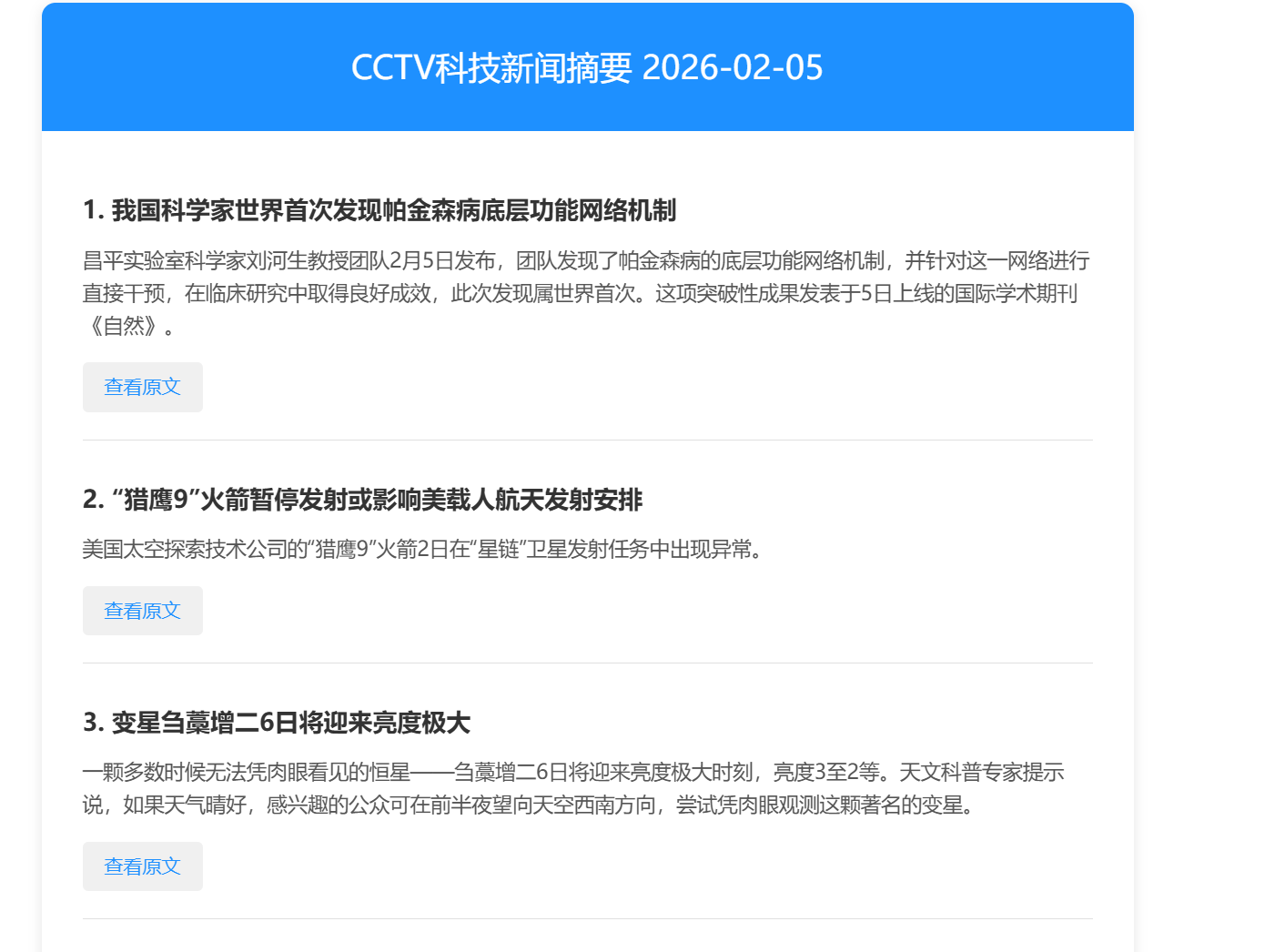 ✅ 真实数据源:直接抓取CCTV科技频道最新新闻