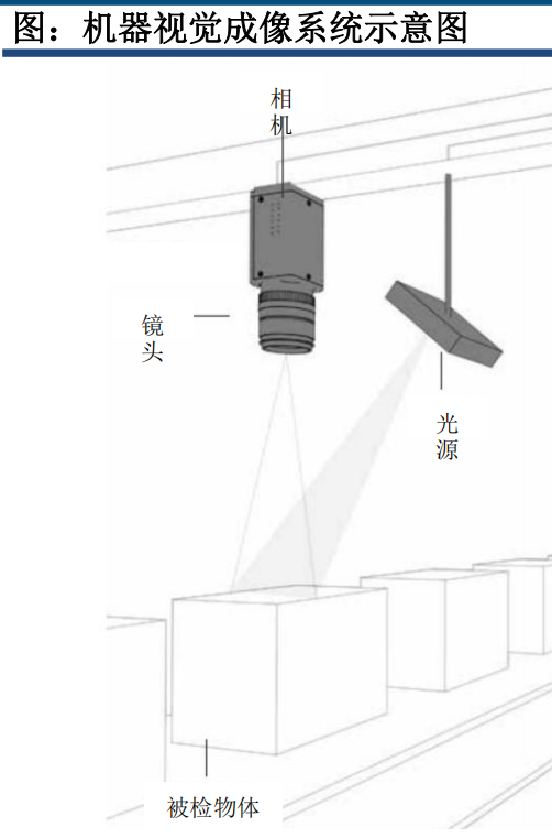 工业机器视觉是软硬件一体化的集成系统,它的目的是代替人眼对被测物进行观察和判断。从组成上,机器视觉系统硬件设备主要包括光源、镜头、相机等,软件主要包括传统的数字图像处理算法和基于深度学习的图像处理算法。系统工作时首先依靠硬件系统将外界图像捕捉并转换成数字信号反馈给计算机,然后依靠软件算法对数字图像信号进行处理。