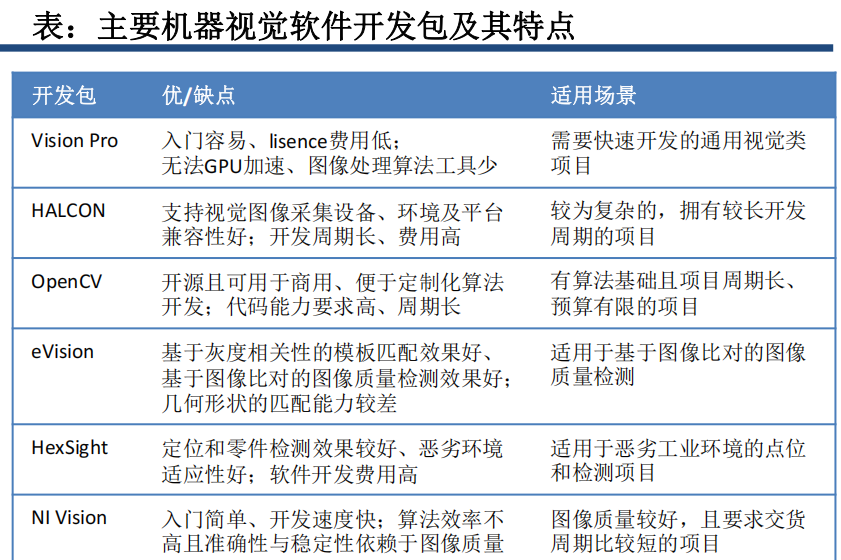 下图是主要的机器视觉软件开发包,其中包含了相关的底层算法。