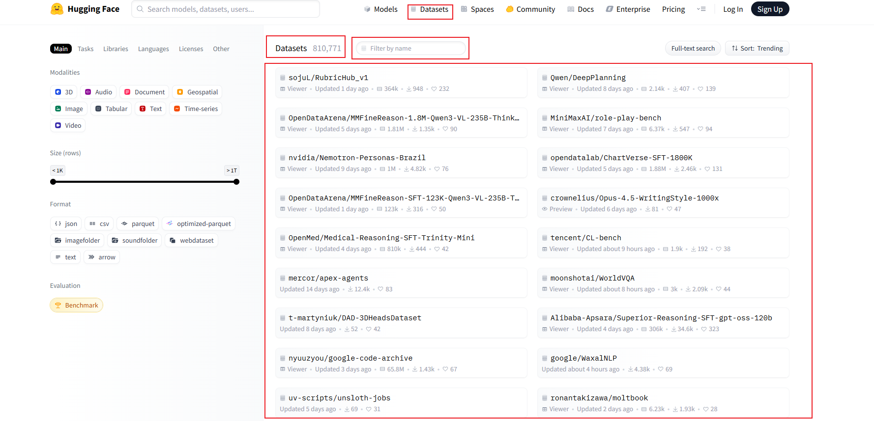 Hugging Face提供了大量的数据集,包括音视频、计算机视觉、自然语言处理领域的任务。