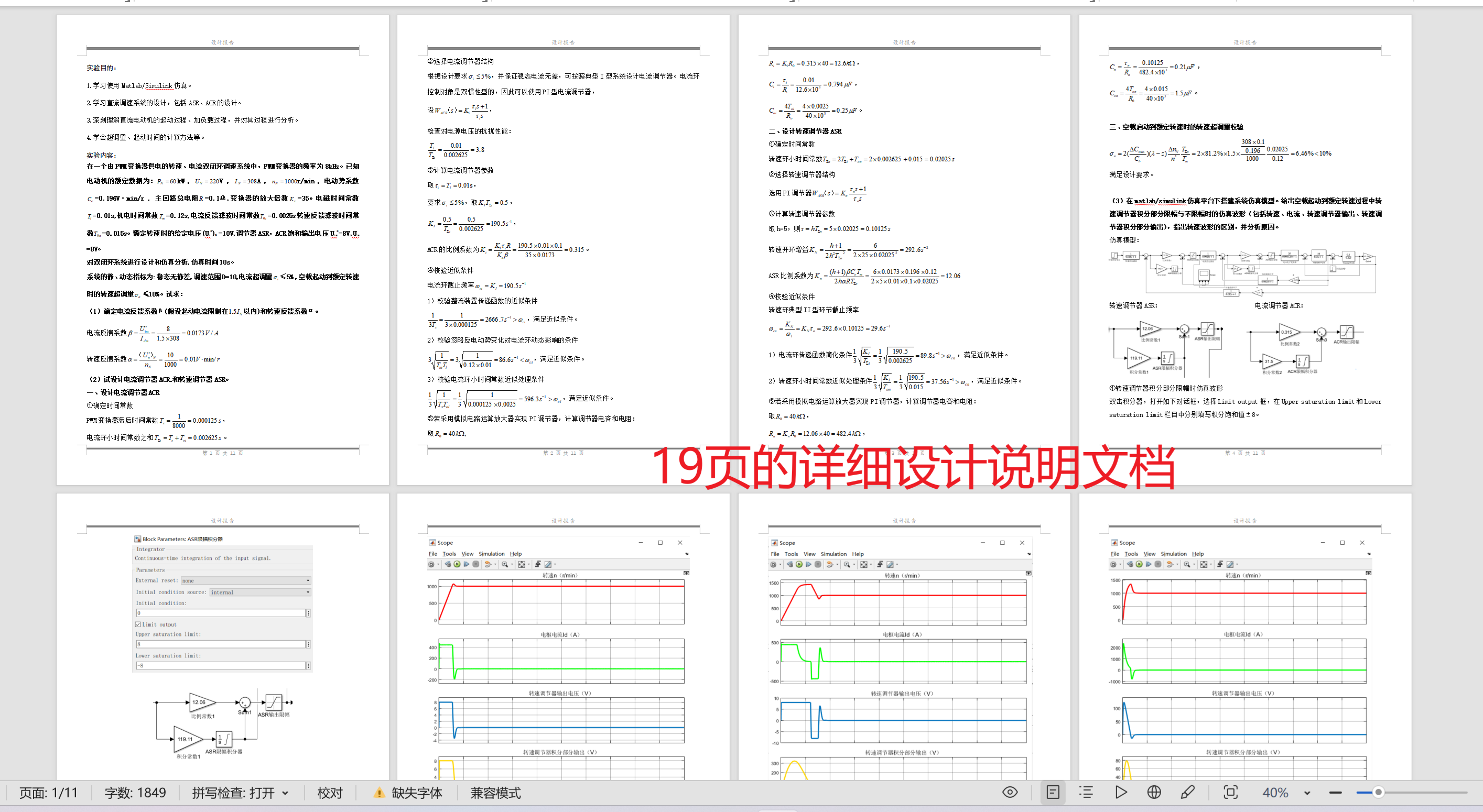 直流电机调速系统、转速+电流双闭环无静差控制(仿真+设计Word报告)