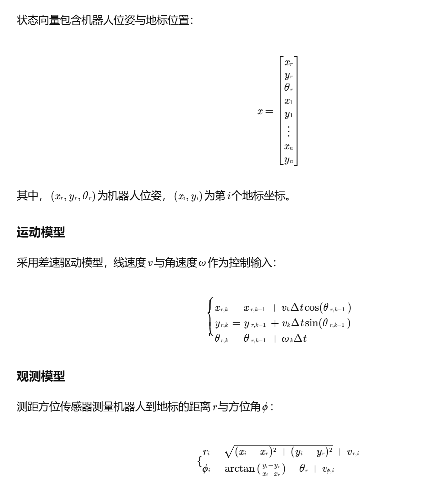 设计EKF预测-更新双阶段算法,实现位姿与地标状态的联合估计;