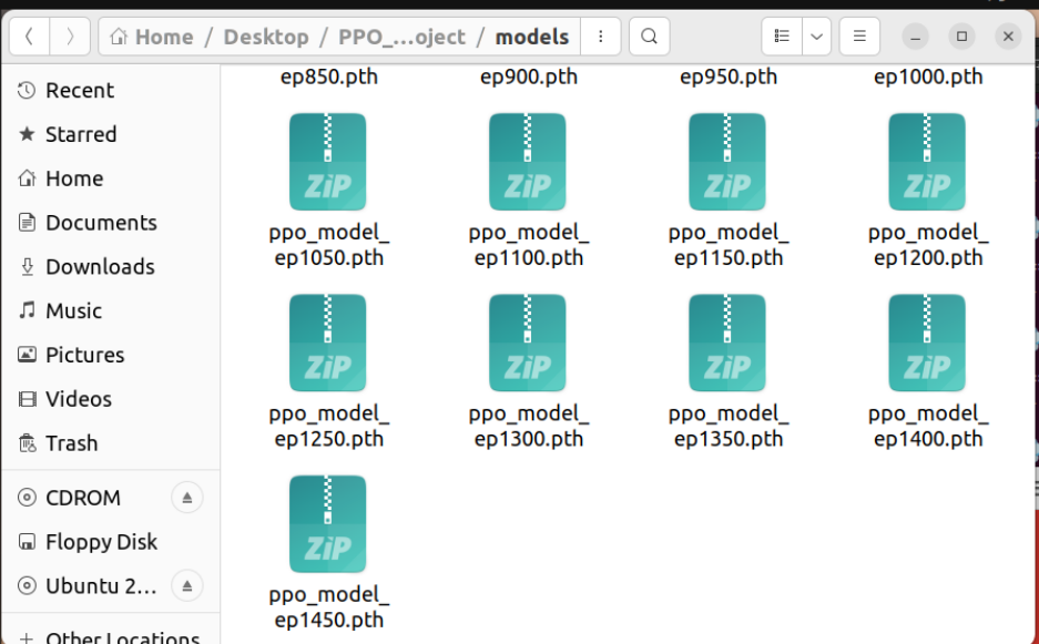 查看你的模型文件: 打开左侧文件栏的 models 文件夹,看一眼现在保存了哪些文件。比如你有 ppo_model_ep1450.pth。