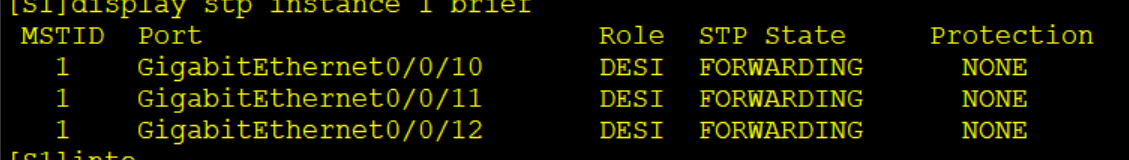 S1 上所有接口都是指定接口,S1 为 MSTI1 的根桥。