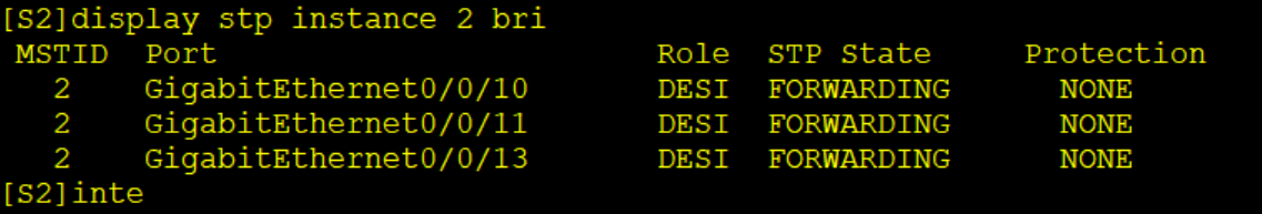 S2 上所有接口都是指定接口,S2 为 MSTI1 的根桥。