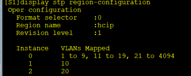 #在 S1 检查 MSTP 实例和 VLAN 的映射关系