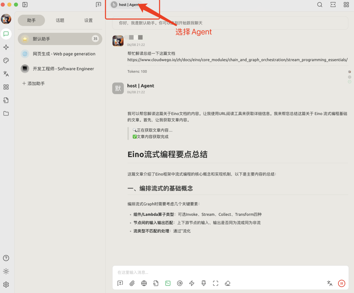 - 回到聊天界面即可与Agent进行对话