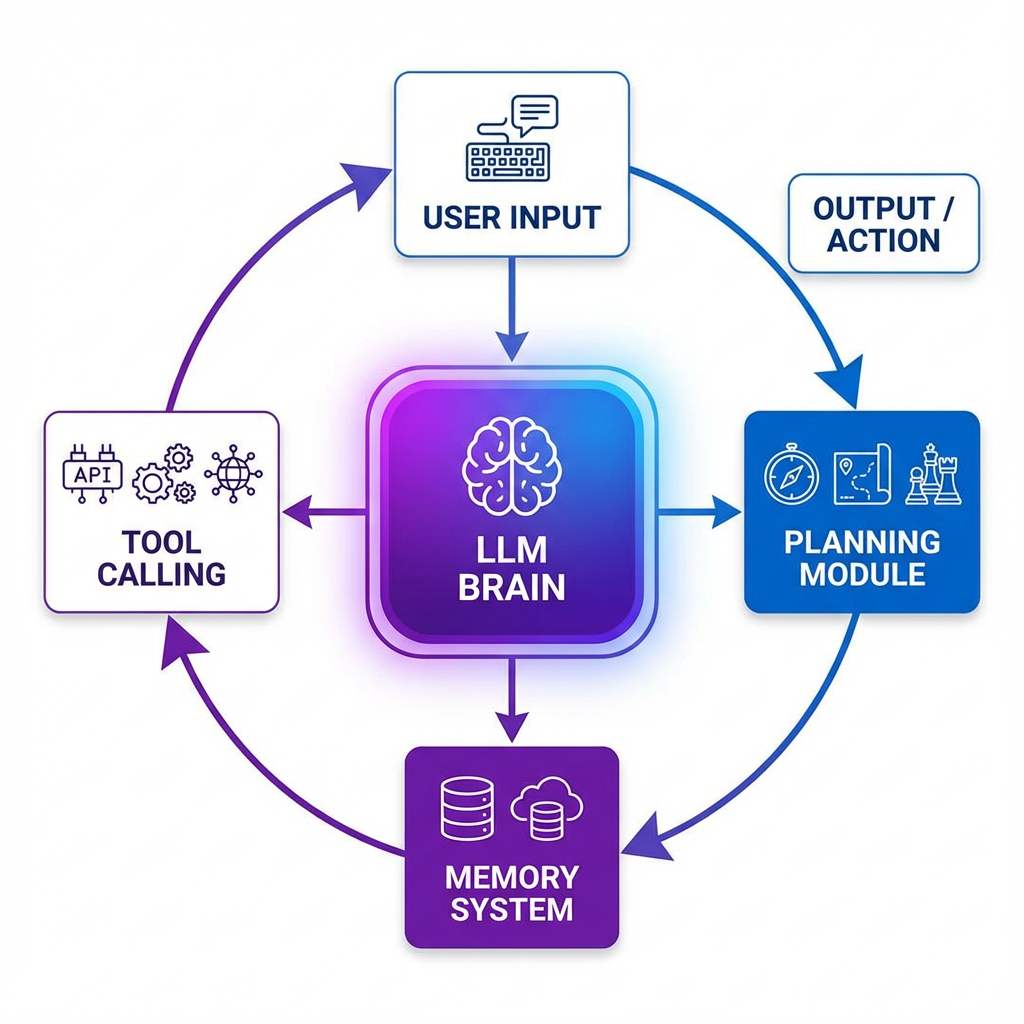 任何一个成熟的Agent系统,都离不开以下四大核心能力,它们构成了Agent的“智能循环”,无论是小白理解概念,还是程序员搭建简易Agent,都要先掌握这四个基础模块: