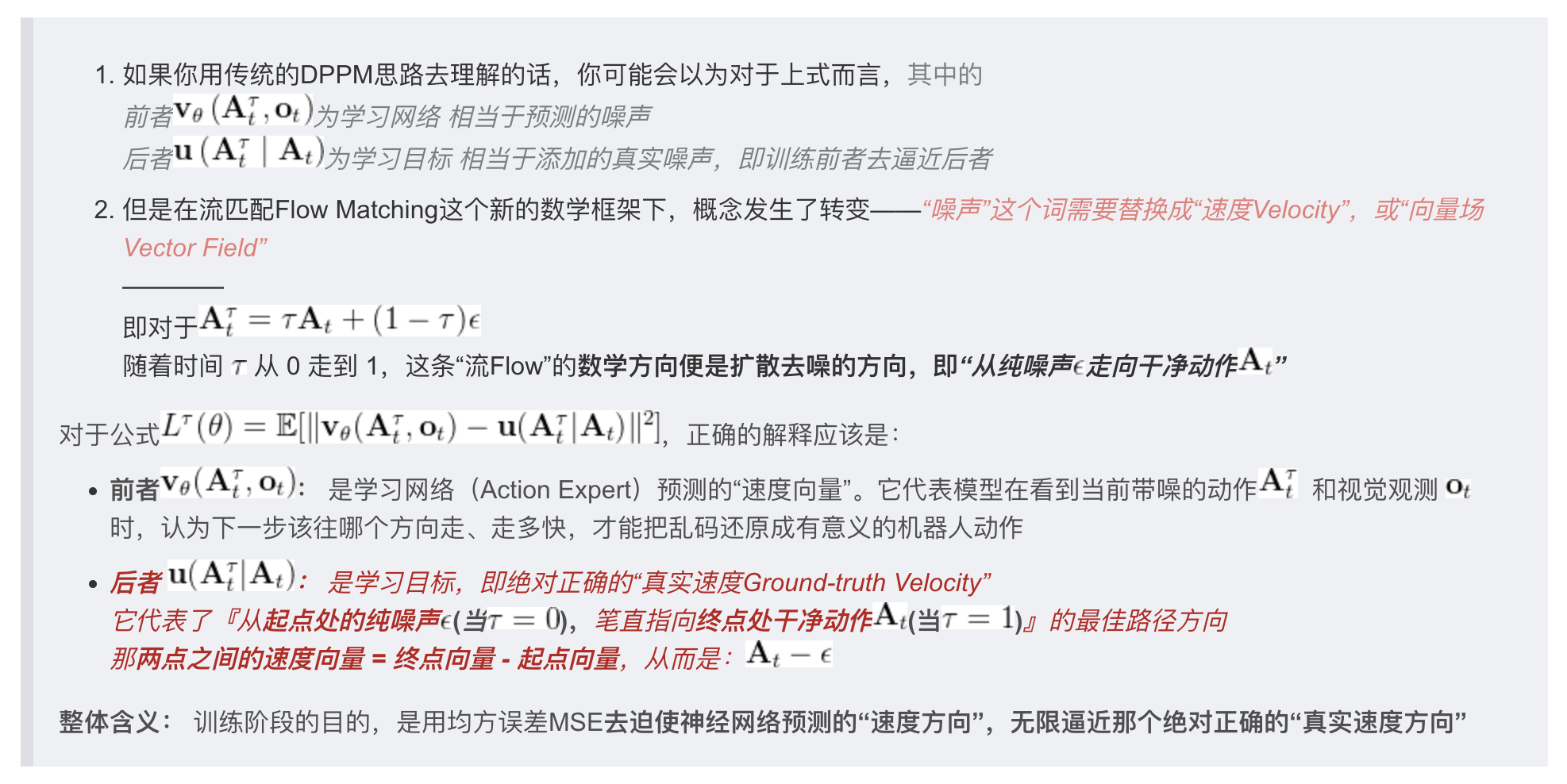这个“速度”指的是从噪音状态指向干净状态的去噪方向23: Target vel. v^k := [z_1^k, a_1^k] - [z_0^k, a_0^k]教练手里的标准答案(Target Velocity,