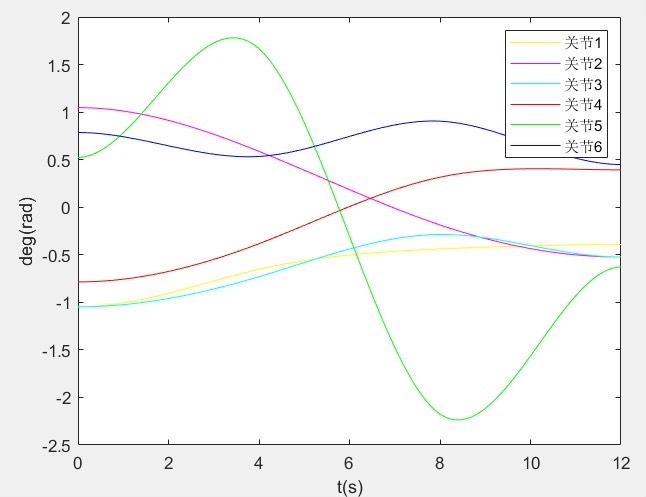 theta_end = [pi/2, pi/4, -pi/4, 0, pi/6, 0]; % 目标关节角度