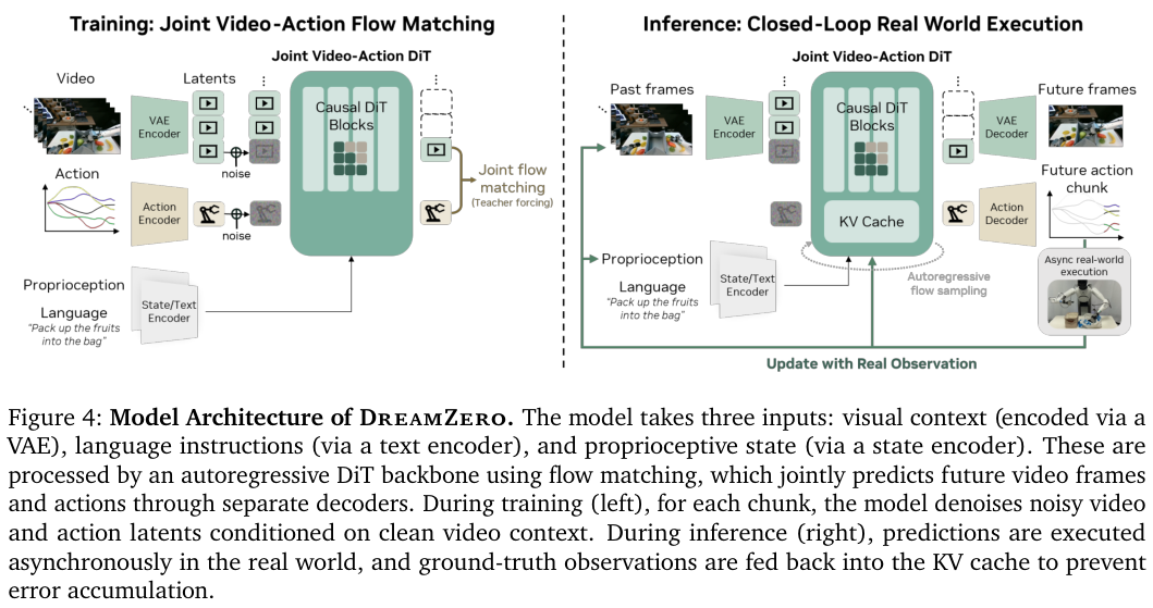 DreamZero 改变了这种范式。它建立在 Wan2.1 这一强大的视频扩散模型基础之上。
