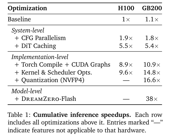 为了解决这个反应间隙(Reactivity Gap),研究团队引入了一系列系统级和模型级的深度优化,统称为 DreamZero-Flash 。