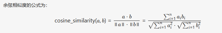 余弦距离(Cosine Distance)的计算,用于衡量两个向量在方向上的相似性。代表 文本语义的相似性