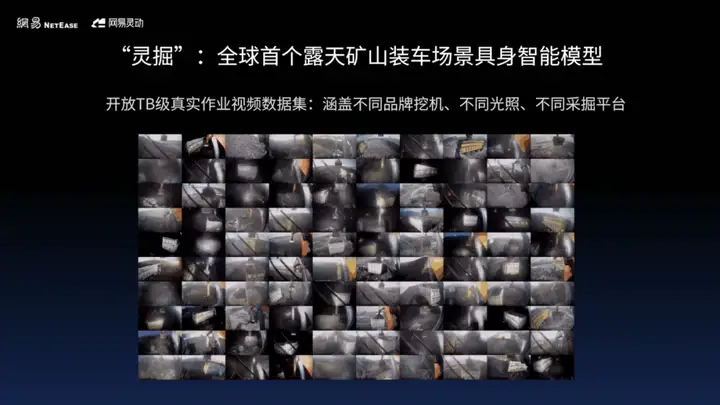基于这一训练框架,“灵掘”具身智能模型依托马尔科夫(MDP)模型构建端到端决策架构,采用视频生成预训练模型+策略扩散模型技术路线,在百万级数据支撑下,累计训练100余小时,最终模型从一开始不知如何下挖,到学会挖满一斗,进而完成一整套装卸与装车作业。这是数据规模定律(Data Scaling Laws)首次在工程机械智能化领域得到验证,为后续工程机械智能化的发展指明了方向——持续获取更多数据。为此,网易灵动对外公布了数据集开放计划,推动行业技术普惠: