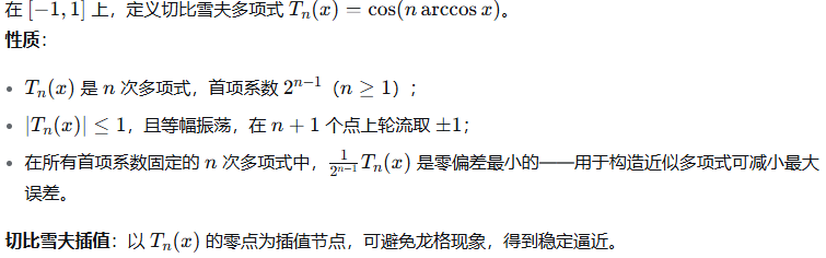 数值积分:将被积函数用多项式逼近再积分(高斯求积公式基于正交多项式);