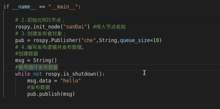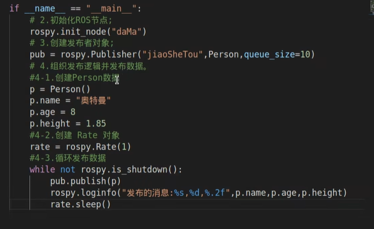 注:1.在最后一定要写上rospy.spin