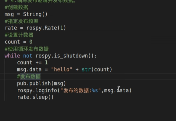 指定发布频率:rate=rospy.Rate(发布频率)