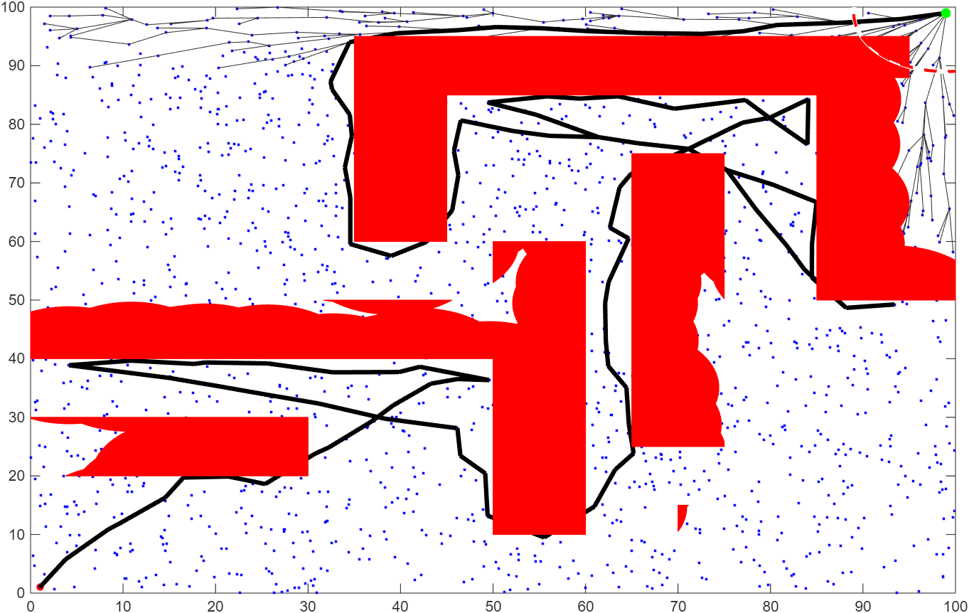 start = [1 1]; goal = [99 99]; epsilon = 5; delta = 0; ball_radius = (8)^2;