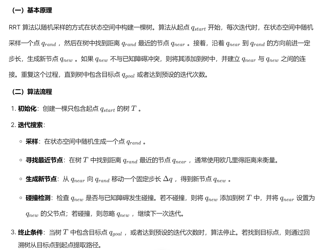 增量式搜索:在检测到新障碍后,不重新构建整棵树,而是基于现有的 RRT 树进行增量扩展。通过局部搜索的方式,快速在树的局部区域找到绕过障碍的路径,减少计算量,满足实时性要求。