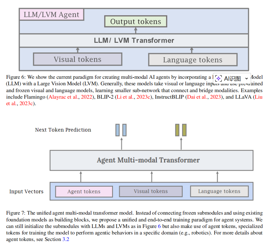 视觉对齐的大型语言模型(如Baker et al., 2022; Driess et al., 2023)则为基础多模态代理奠定基础,支持代理在各种环境中行动。 这种集成不仅提升泛化能力,还缓解大型基础模型的幻觉问题——即生成环境不正确输出的倾向。 通过 grounding 在真实环境中,Agent AI减少不准确输出,推动更可靠的交互。