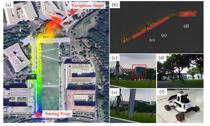 真实世界 (Real-world): 在深圳南方科技大学校园内进行测试,场地范围达 $350m \times 450m$,包含复杂的遮挡物 。