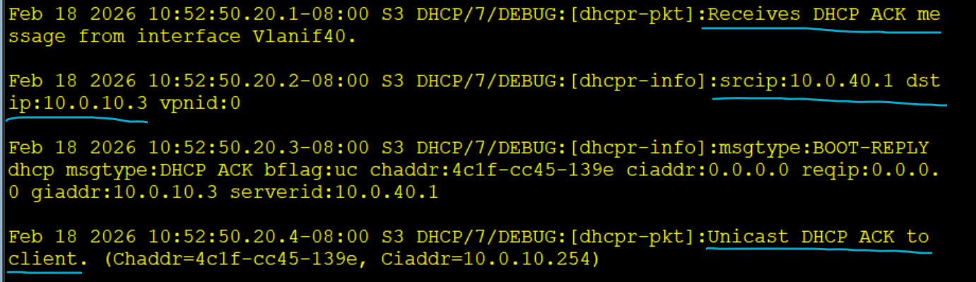 [S3-Vlanif10] dhcp relay server-ip 10.0.40.1