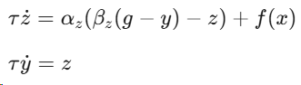 DMP由一组非线性微分方程定义,包含变换系统(transformation system)与正则系统(canonical system)两个耦合部分。变换系统描述系统的运动动力学,正则系统提供时间依赖的相位变量。