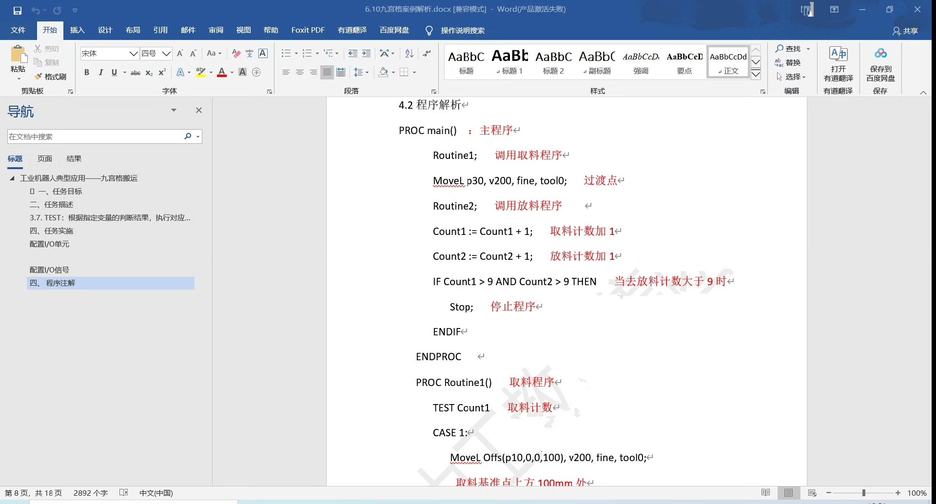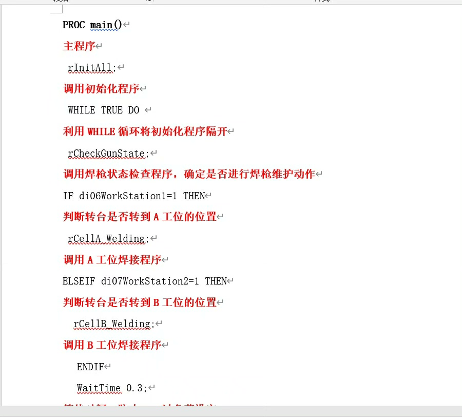 代码分析:这段代码首先定义了抓取点PickPoint和放置点PlacePoint。在main程序中,先通过MoveJ指令以关节运动方式快速移动到抓取点附近,然后打开夹具,再以线性运动MoveL精确到达抓取点并关闭夹具抓取物品。接着线性移动到放置点,打开夹具放下物品,最后关节运动回到初始位置。
