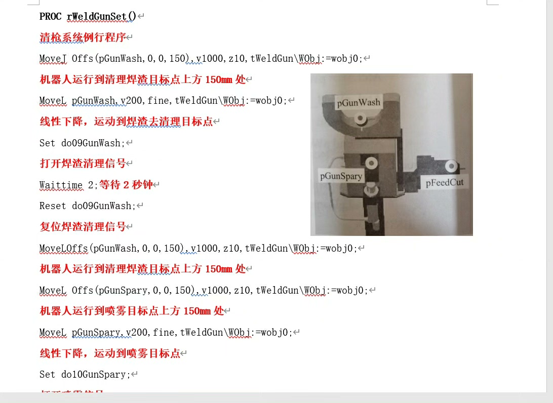 这里定义了焊接参数MyWeld,通过ArcL指令控制机器人沿着指定路径进行弧焊操作,从起始点到终点,最后使用ArcStop停止焊接。