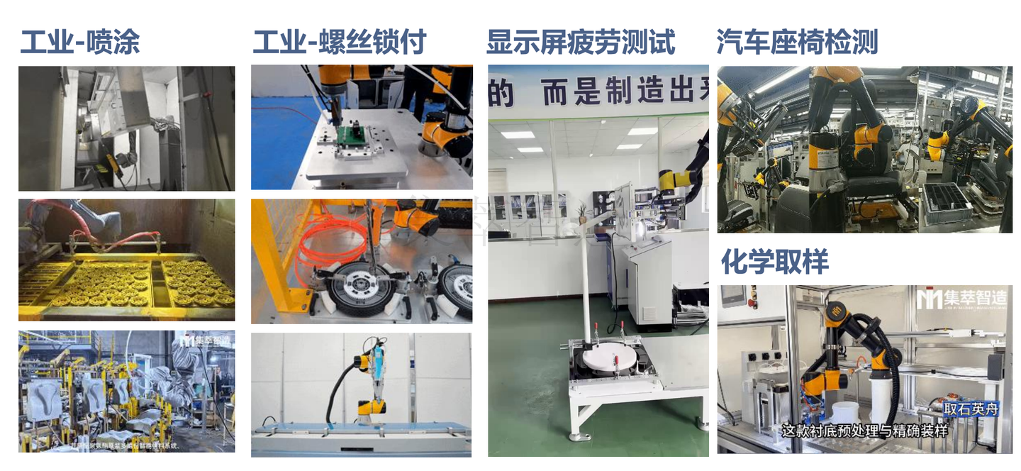集萃智造协作机器人可灵活适配3C电子、新能源、汽车零部件、焊接、物流等多个行业,无论是高精度精密场景,还是高尘、高温等复杂工况,均能稳定发挥作用。同时,支持根据企业具体需求,定制负载、臂展、功能模块,打破竞品场景局限的短板,实现“一机适配多场景、按需定制更精准”。