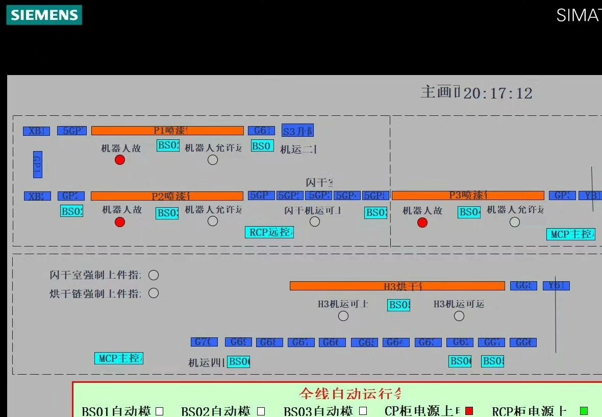 汽车喷涂线wincc和西门子300 PLC大型经典汽车喷涂线 -汽车涂装程序~RFID读写机器人通讯报警管理~通过Profinet连接7个远程终端ET200SP和24台变频器G120 Profinet通讯~详细中文注释~西门子触摸屏TP1200程序~汽车厂大程序,有很大的借鉴意义。程序15.1及以上可以打开在汽车制造领域,喷涂线的自动化控制至关重要。今天咱就来唠唠这套大型经典汽车喷涂线,它基于Wi